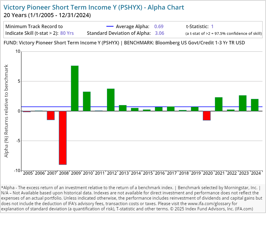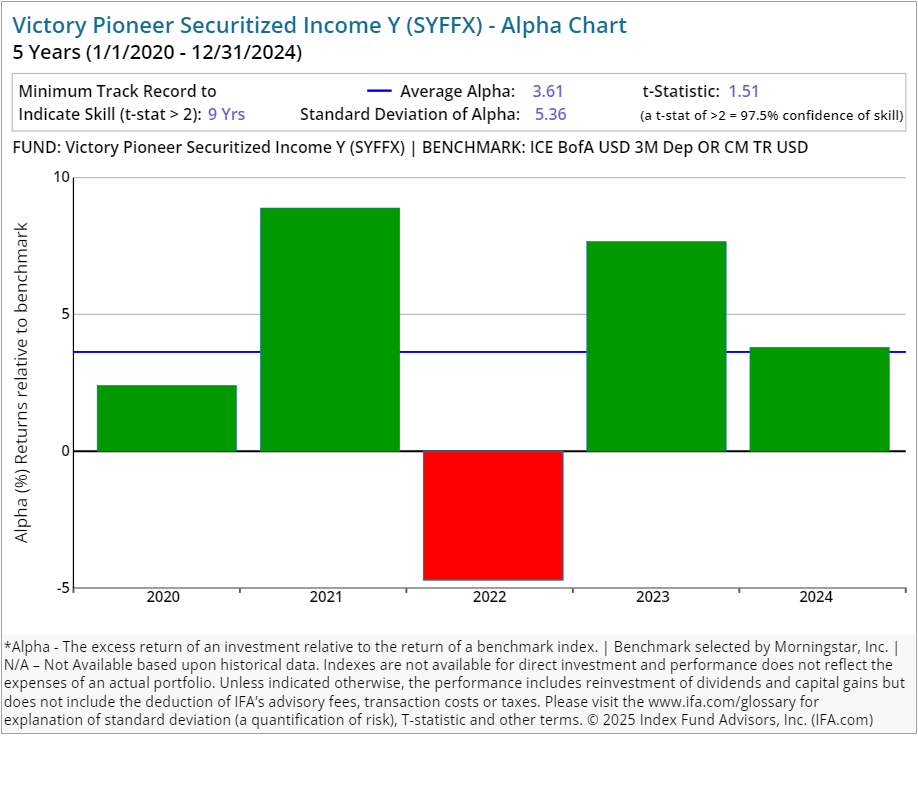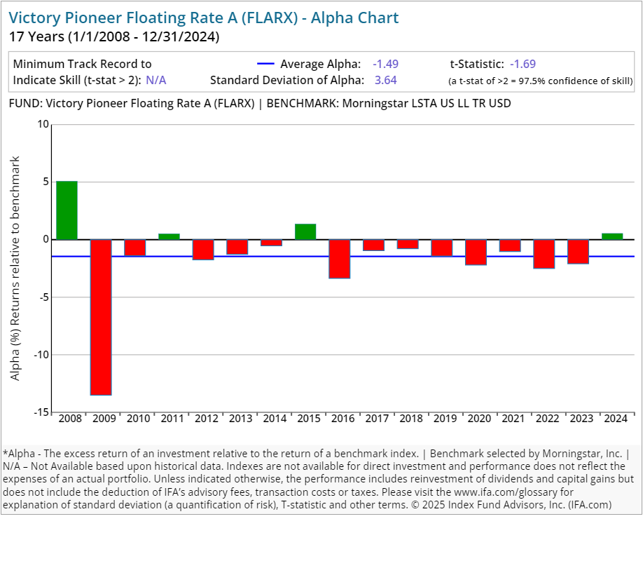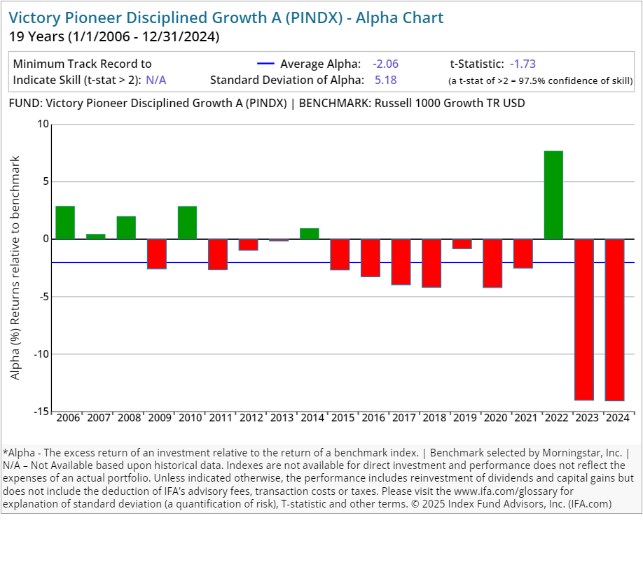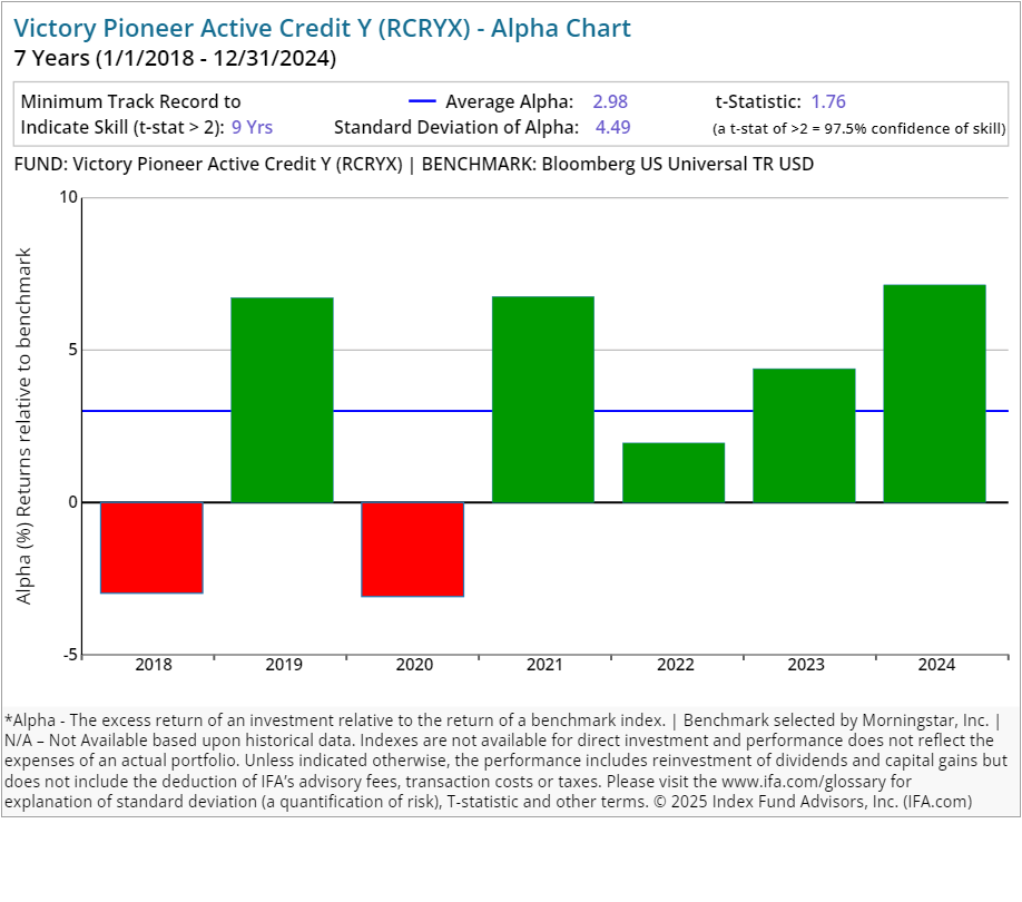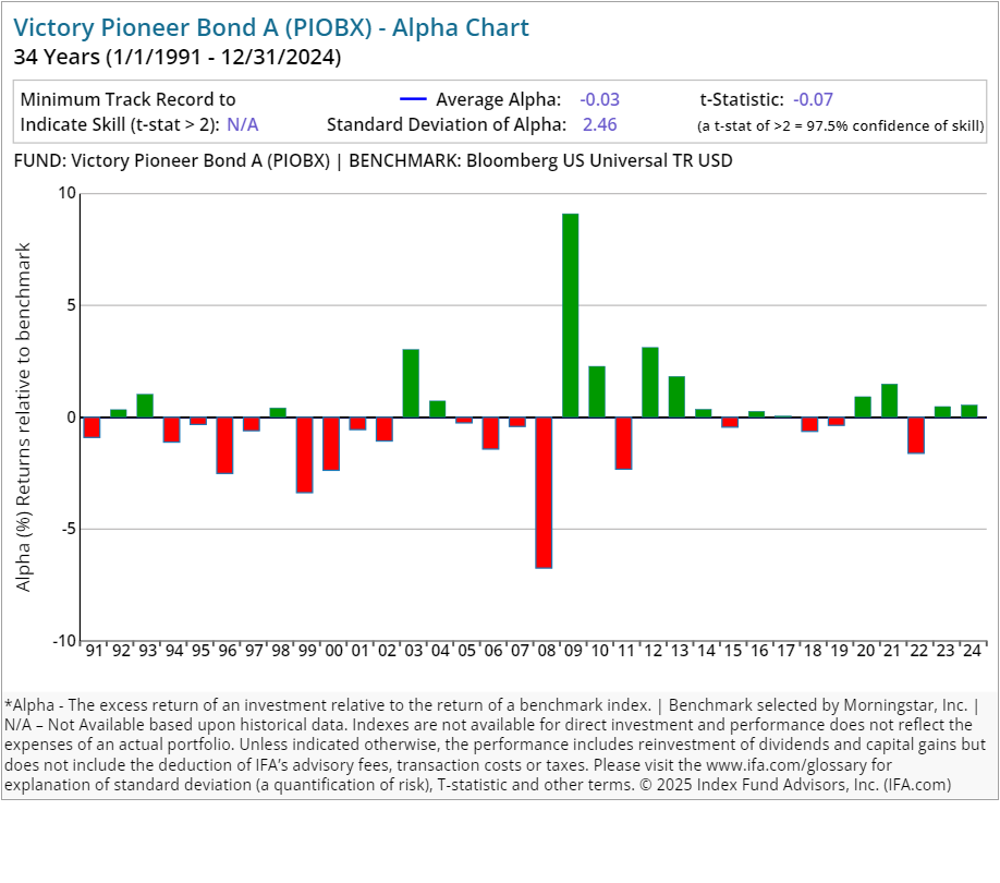 It's safe to say that the majority of funds offered by Victory Capital have not outperformed their Morningstar assigned benchmark. The inclusion of the statistical significance of alpha is key to this exercise, as it indicates which outcomes are due to a skill that is likely to repeat and those that are more likely due to a random-chance outcome.