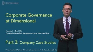In part three of this three part series, Joe Chi, Head of Responsible Investment and Vice President at Dimensional Fund Advisors, gives some examples of Corporate Governance in action.